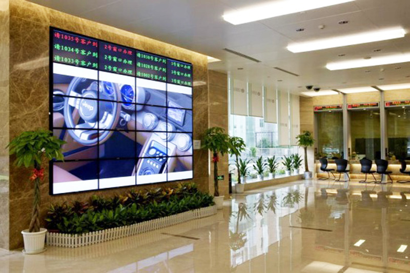 液晶拼接屏入駐銀行內(nèi)部,不僅加強了銀行信息傳播能力,提升了客戶的信任度,也給銀行的安全帶去了強有力的保障!